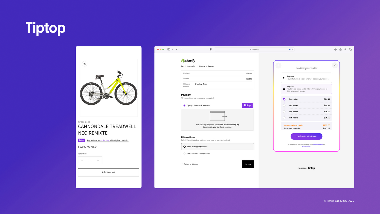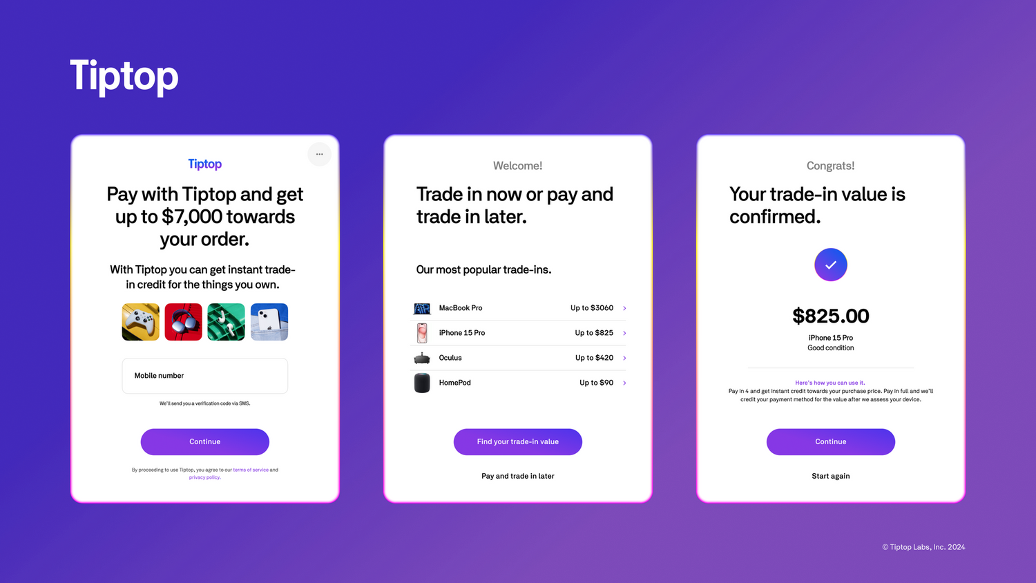 Tiptop gives you instant trade-in credit for the things you own, right at checkout.